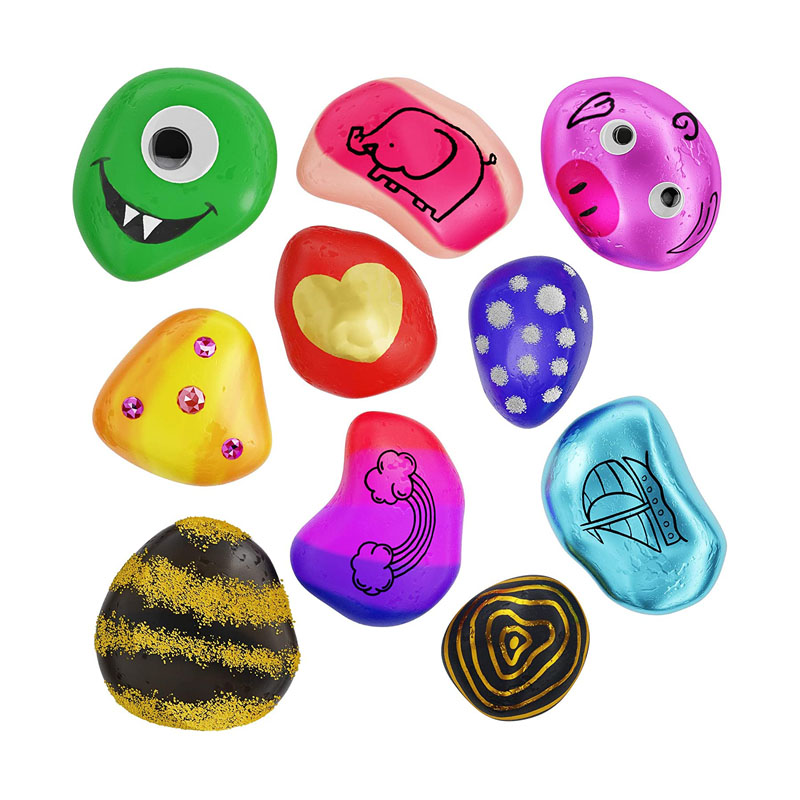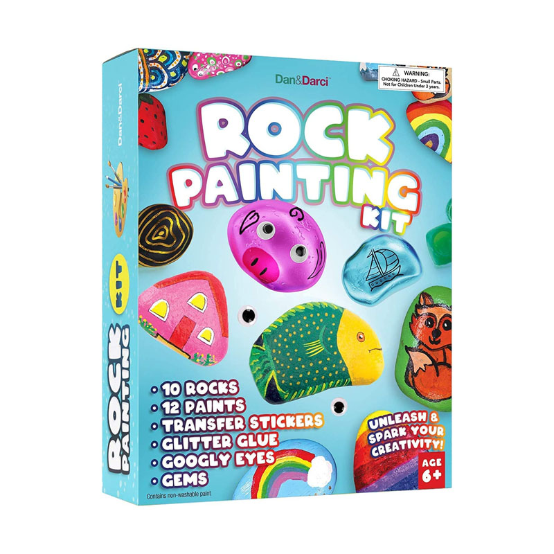 Dezlănțuiți și dezlănțuiți-vă creativitatea: cu kitul de lux pentru pictura în stâncă. Cel mai extins set disponibil, cu vopsele standard și metalice, transferuri de artă, ochi googly, pietre prețioase și multe altele!